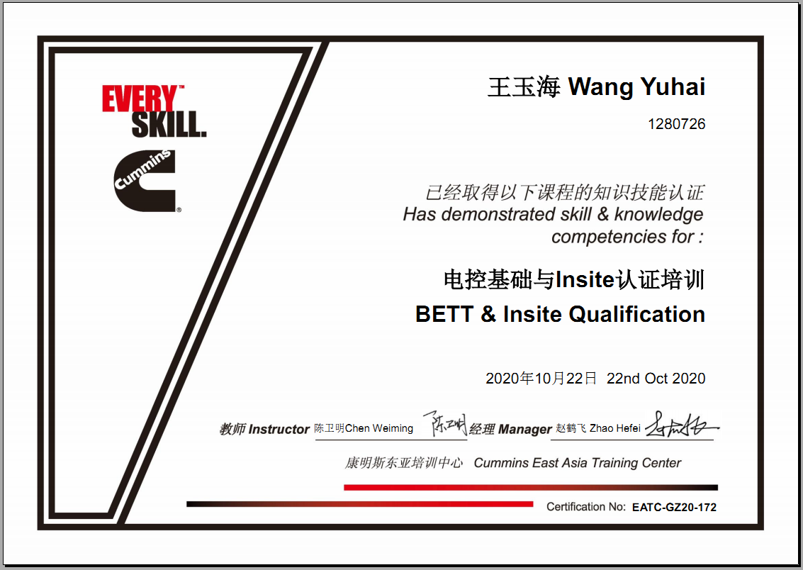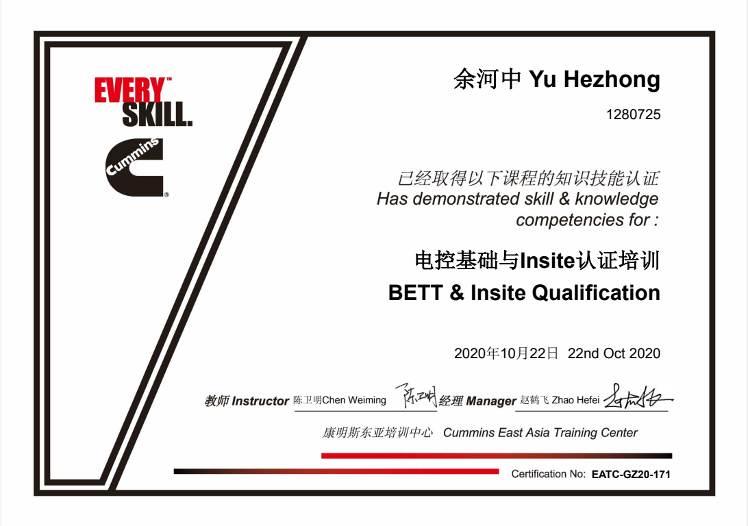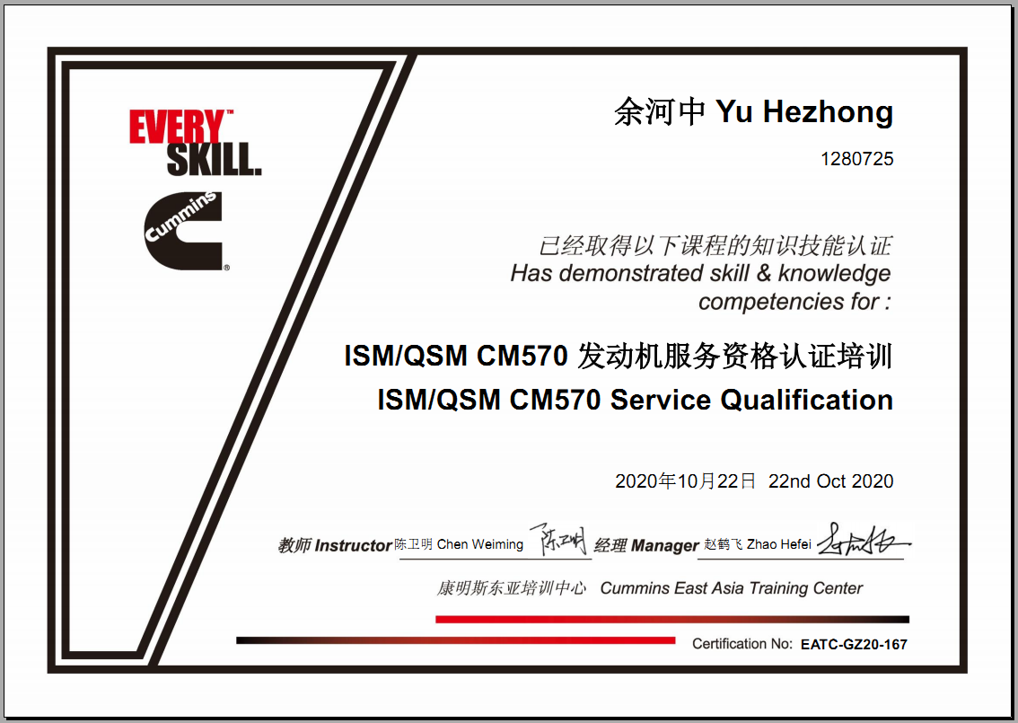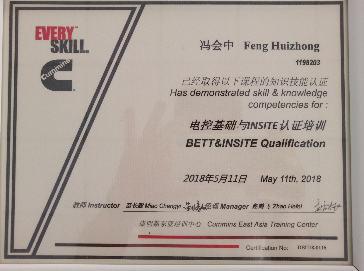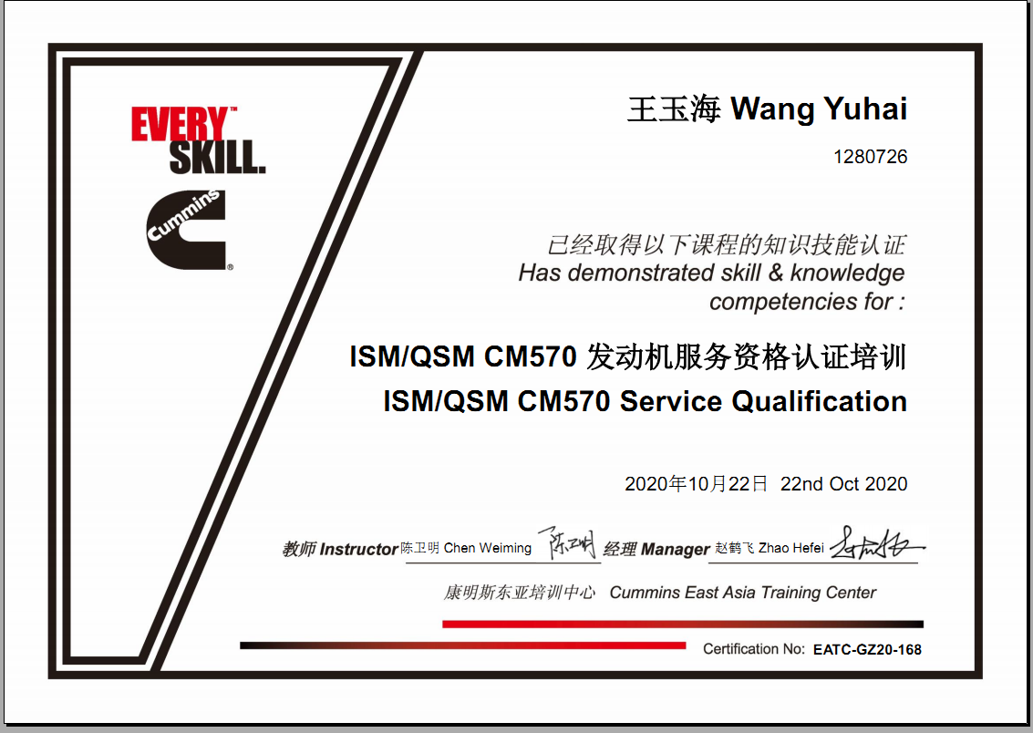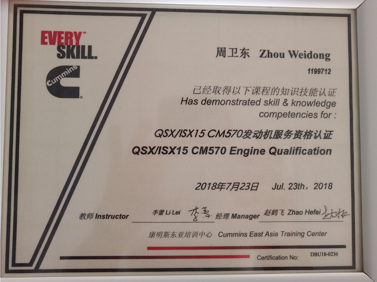 同年河南惠眾取得康明斯ISM/QSM/CM570發(fā)動(dòng)機(jī)服務(wù)資格。