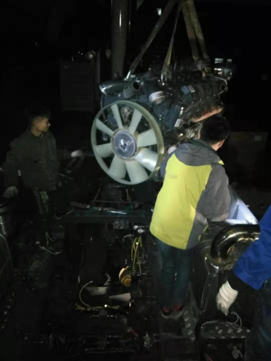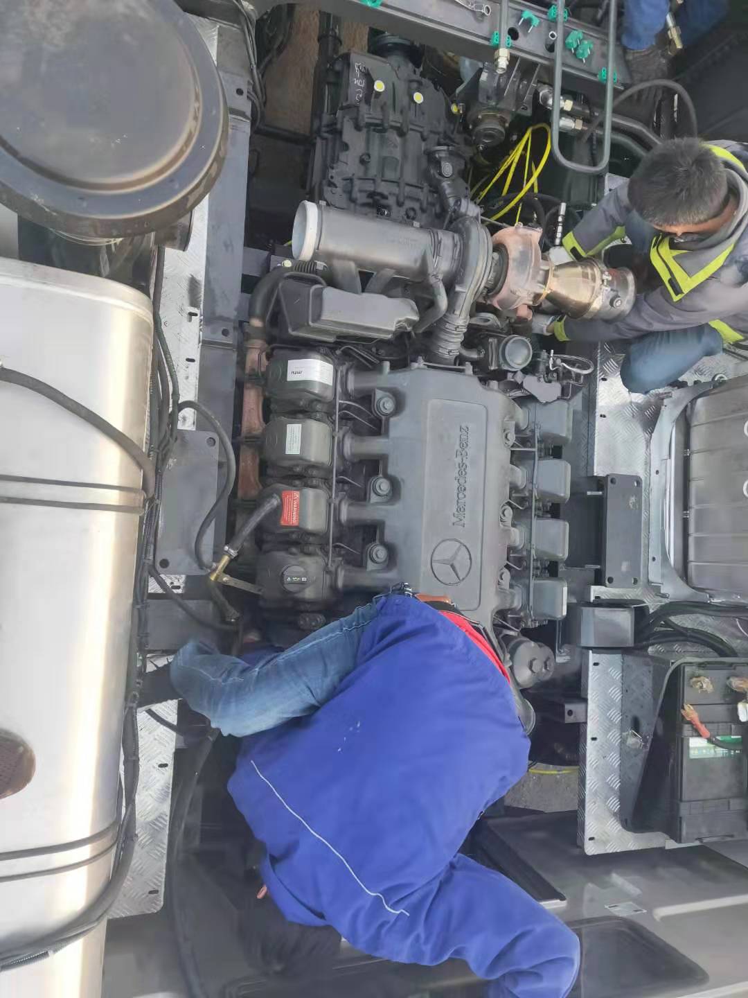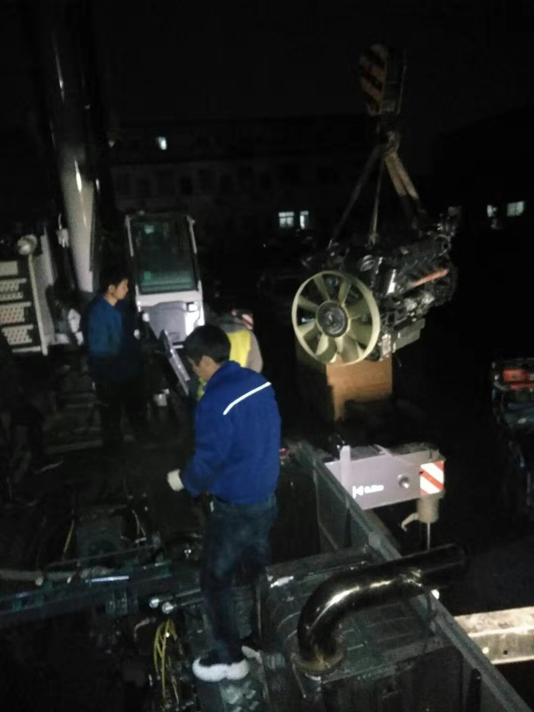 2019年12月18日,河南惠眾接到中聯(lián)重科和安特優(yōu)發(fā)動機工程(蘇州)有限公司指派,連夜奔赴河南省南陽市現(xiàn)場檢修奔馳發(fā)動機。經(jīng)過3天2夜的搶修,順利完成發(fā)動機總成更換工作。