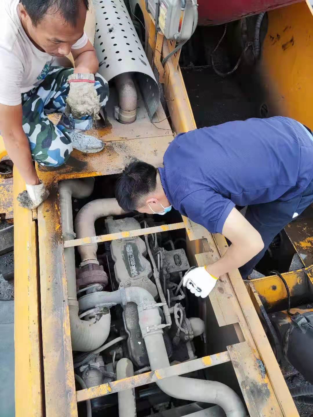 我公司人員到達后攜手另兩個公司的人員一起對三一起重機發(fā)動機進行了全面的檢查。