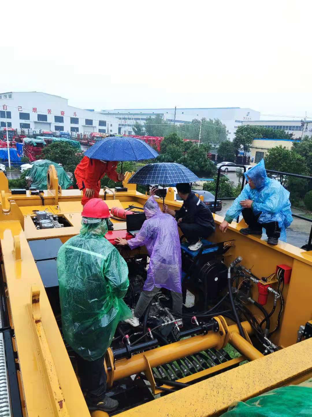 巡檢人員到達的時候,新鄉(xiāng)已經(jīng)下起了雨,他們只能穿著雨衣,淋著雨對發(fā)動機進行檢查