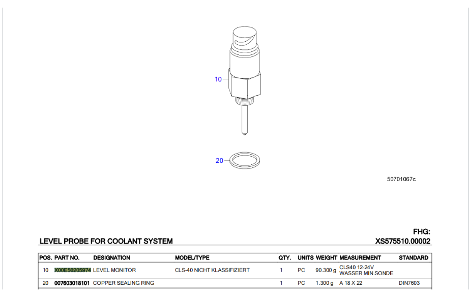 MTU發(fā)電機組16V2000液位傳感器-X00E50205974